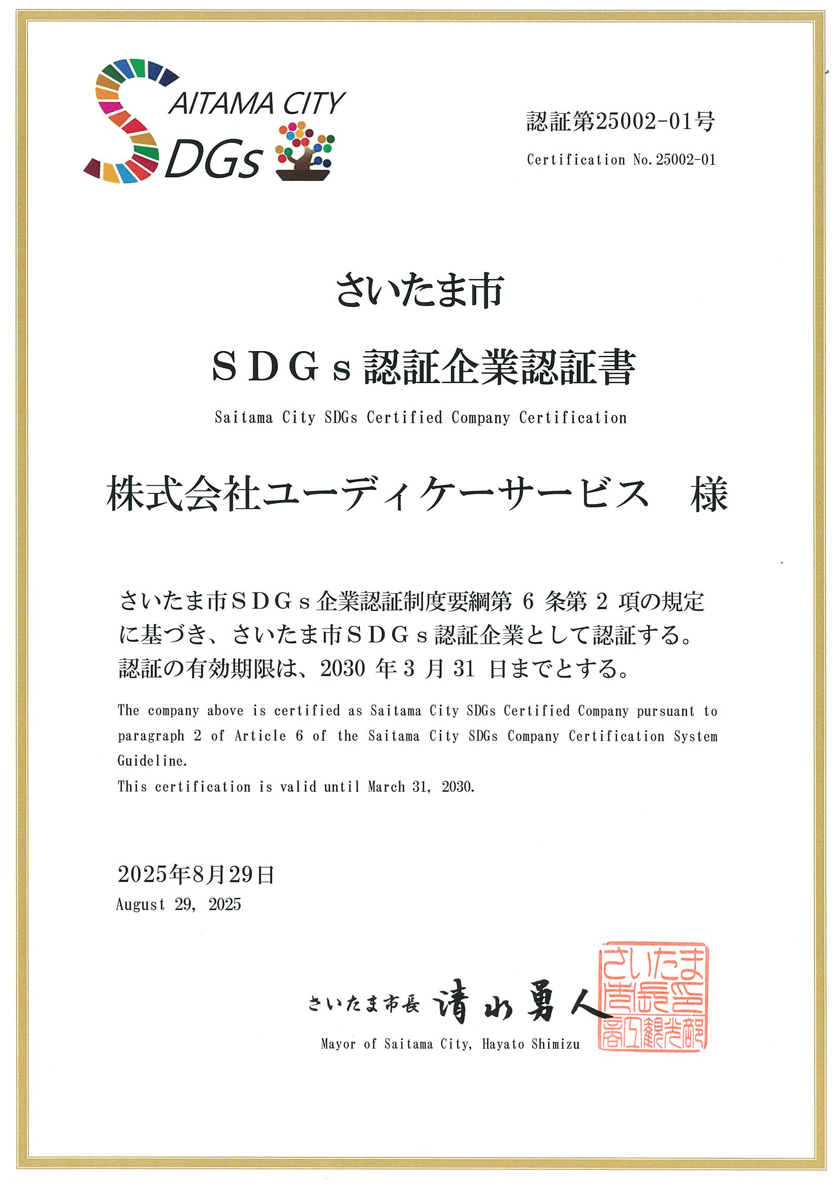 さいたま市SDGs認定企業認証