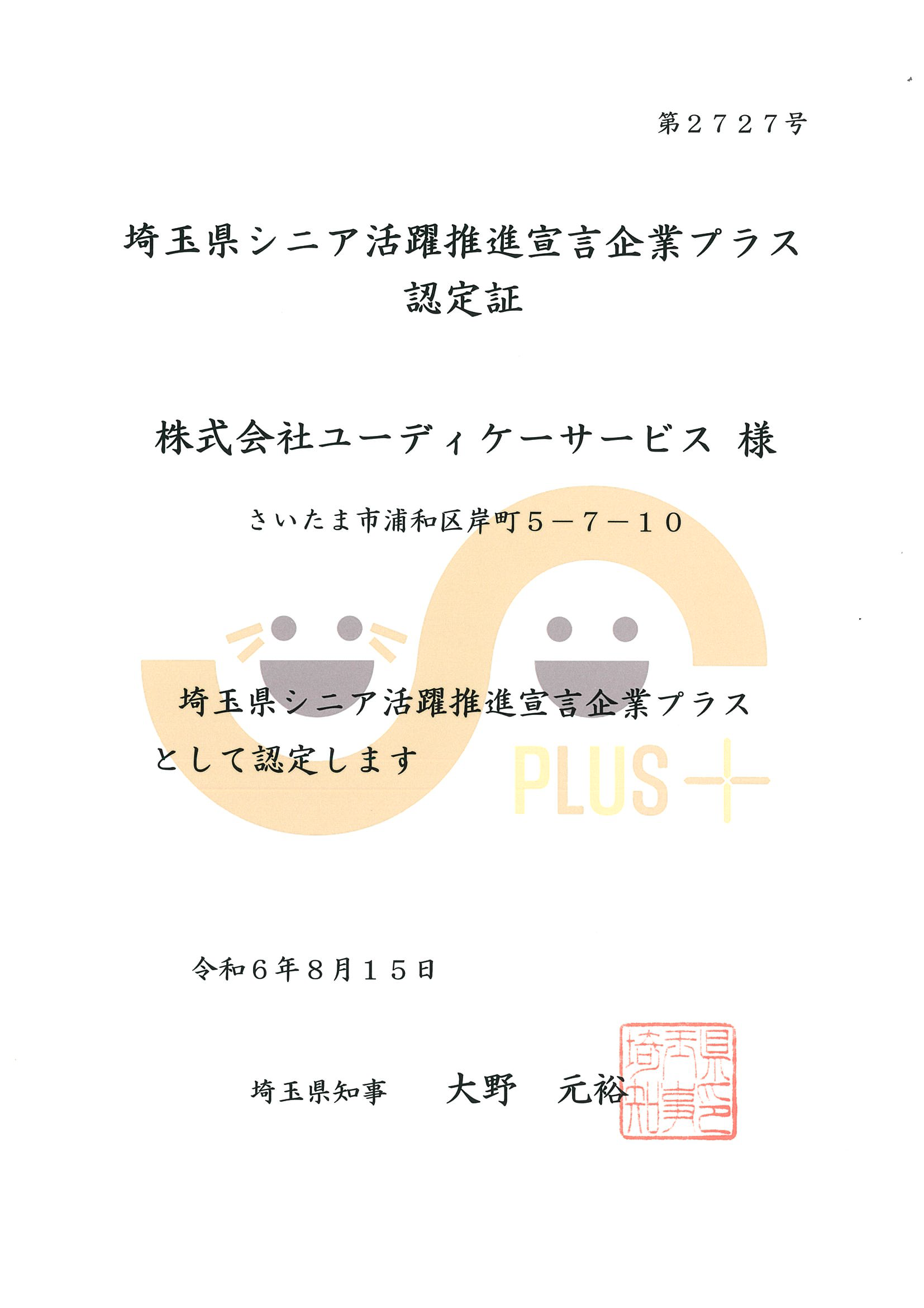 埼玉県シニア活躍推進宣言企業プラス